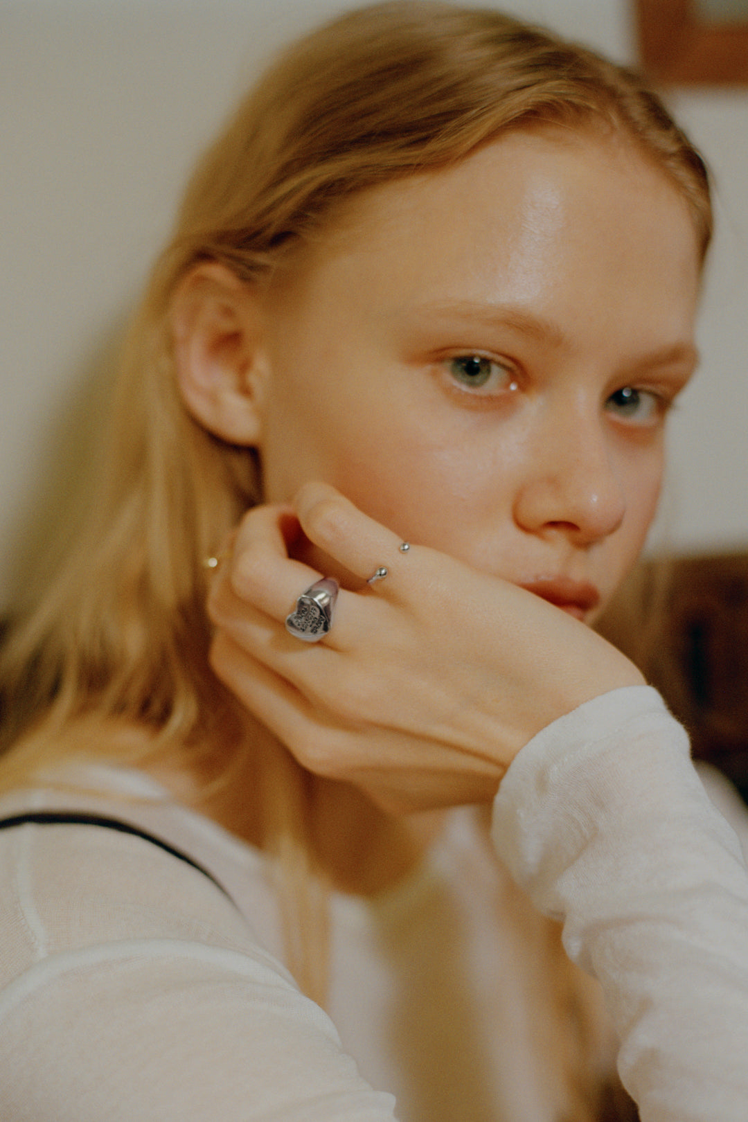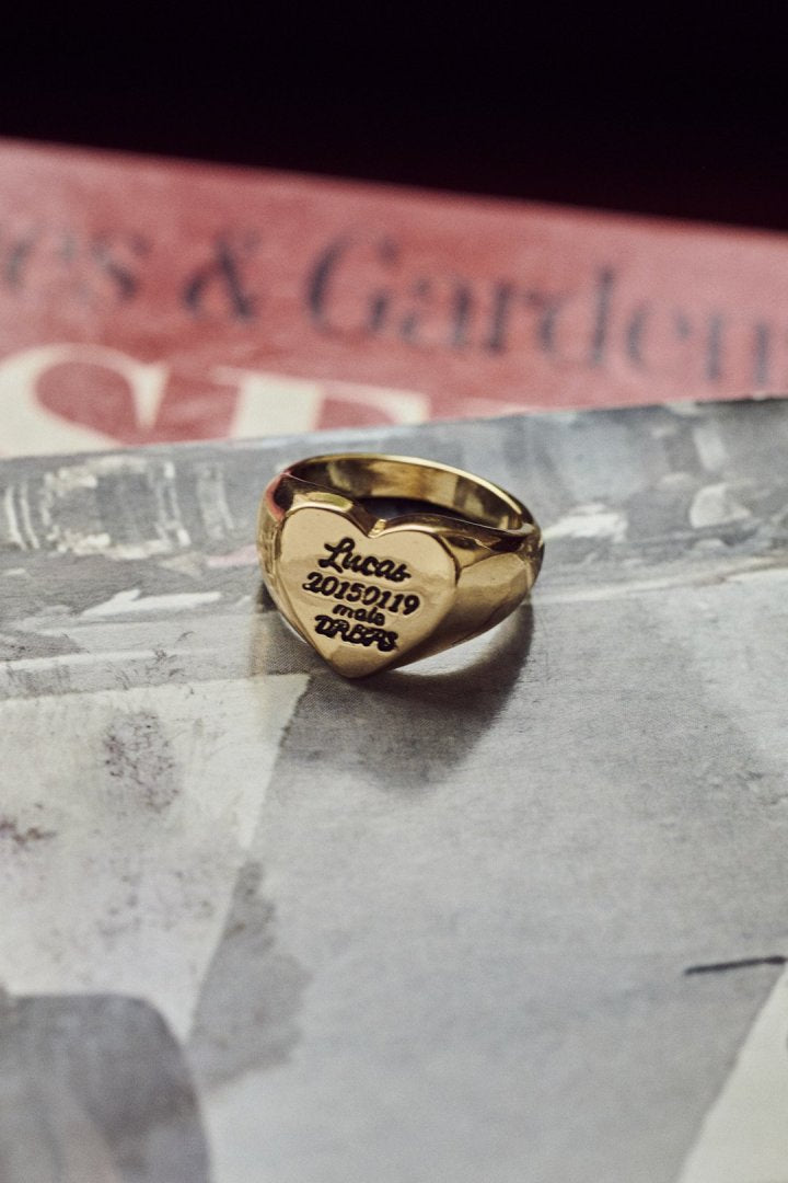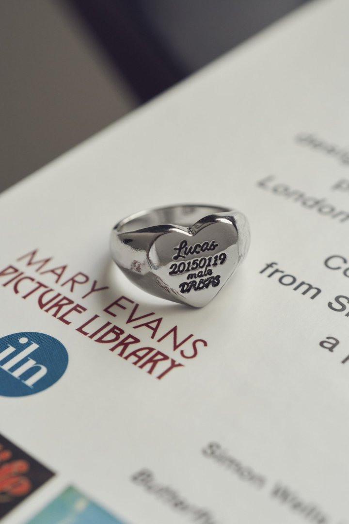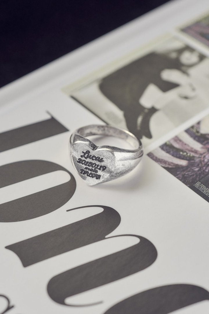 『ダラスに住む犬“ルーカス”』のドッグタグをイメージしたリング。
