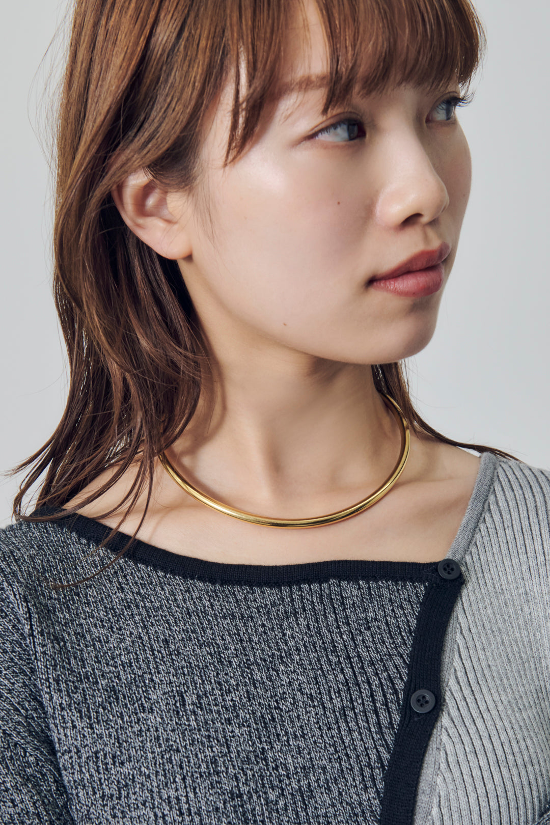 【GOLDY STAINLESS】耐久性に優れたステンレス素材を使用した、GOLDYのアクセサリー。◯ 水や汗に強いので錆びにくく、変色しにくい◯ キズがつきにくい◯ 金属アレルギーが比較的起きにくいといった特徴があるステンレス素材は、様々な方にオススメです。■シルバーカラーメッキ加工を施していない、素材そのままの色味となります。■ゴールドカラーステンレスに、イオンプレーティング加工によってゴールド色の着色をした商品です。通常のメッキと比べて、密着性・耐食性・磨耗耐久性に優れています。*******************************トレンド感のあるネックカフは、チョーカーやネックレスとはまた違った、新しい着け感が目を惹くアイテム。太めのラインが首元に沿うようにカーブしたデザインは、身に着けるだけで洗練されたスタイルに。シンプルなデザインでどんなファッションにも合わせやすく、またオールシーズン使えるのも嬉しいポイントです。