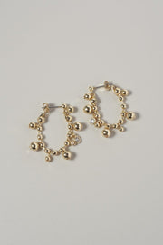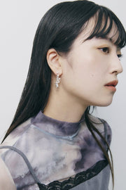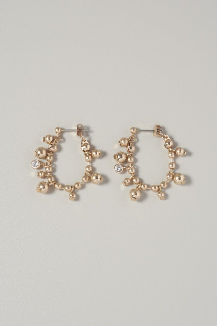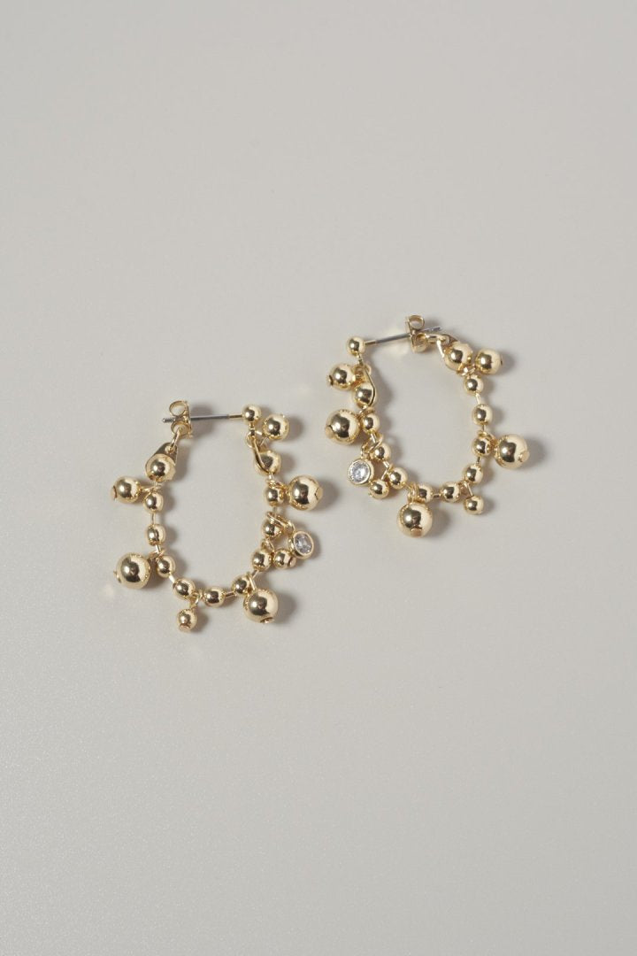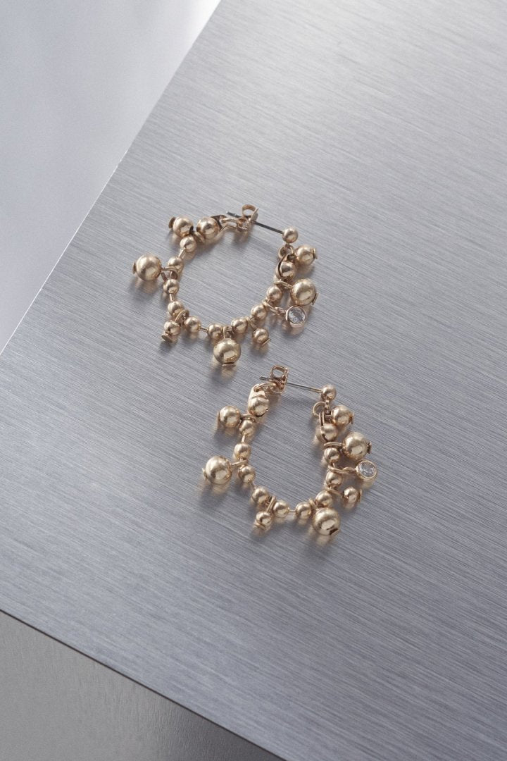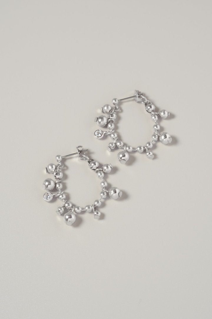 キュービックジルコニアがアクセントになったボールチェーンをフープピアスに仕上げたデザイン。