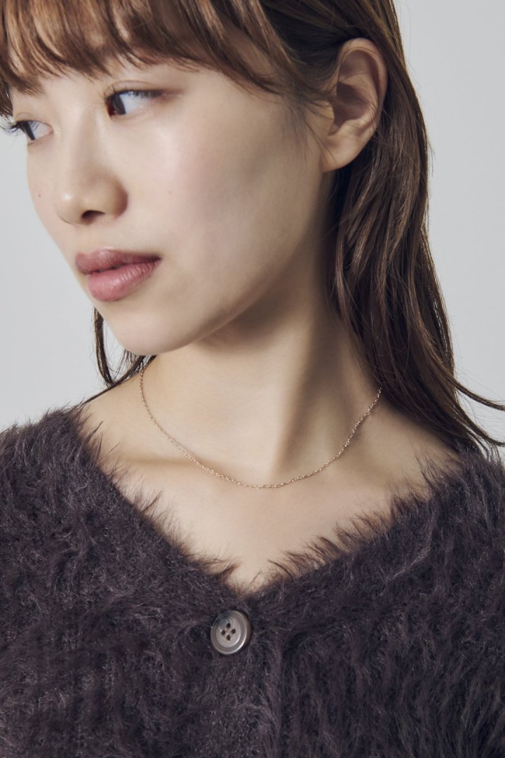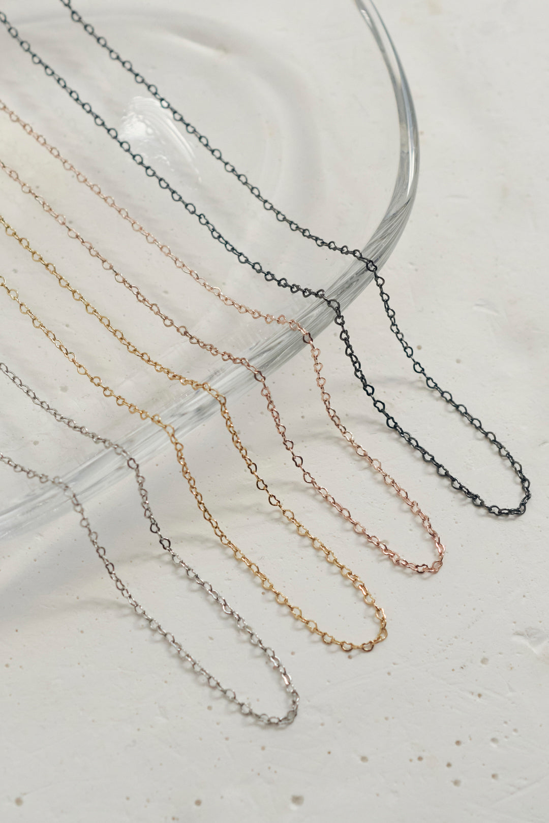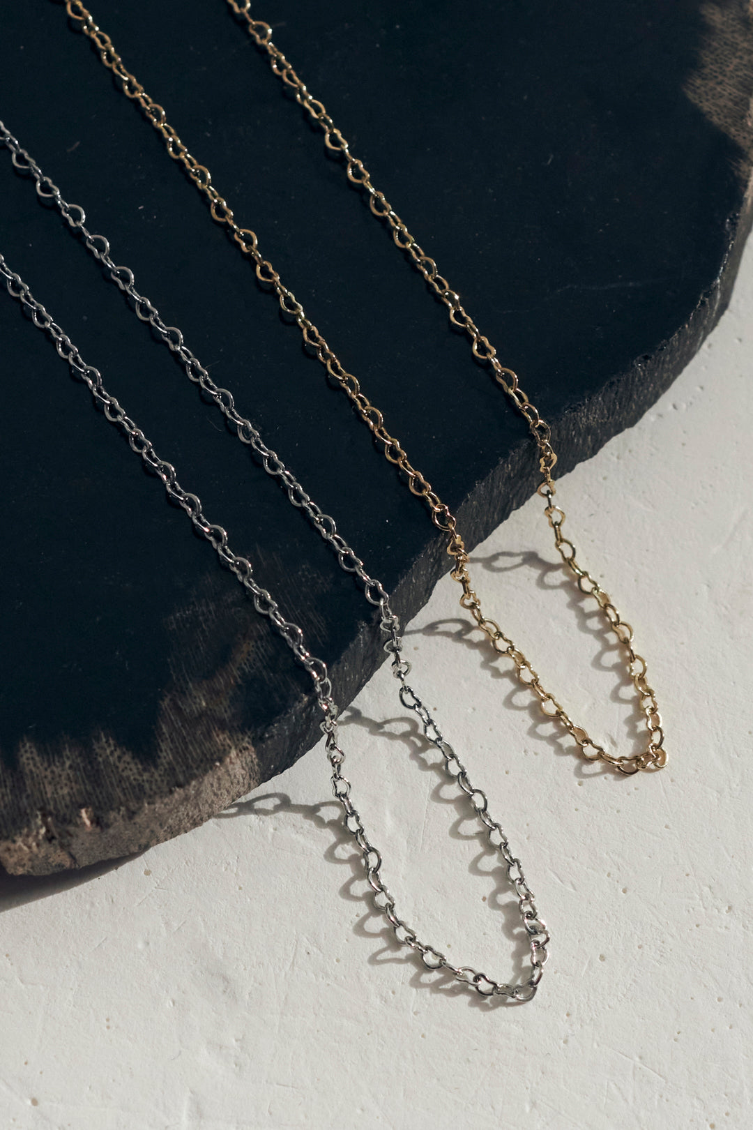 ミニマムサイズのハートが連なった、華奢なチェーンネックレス。