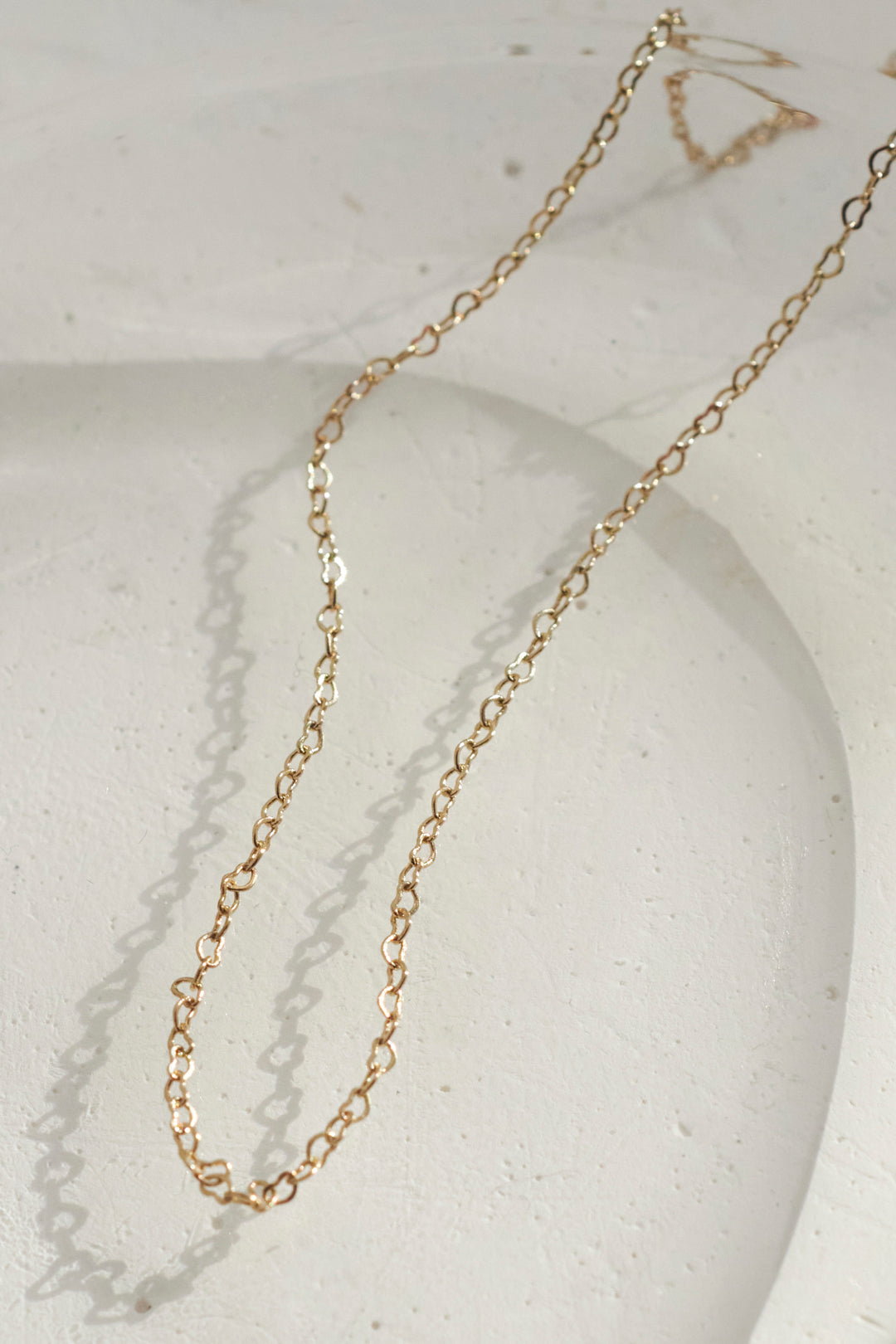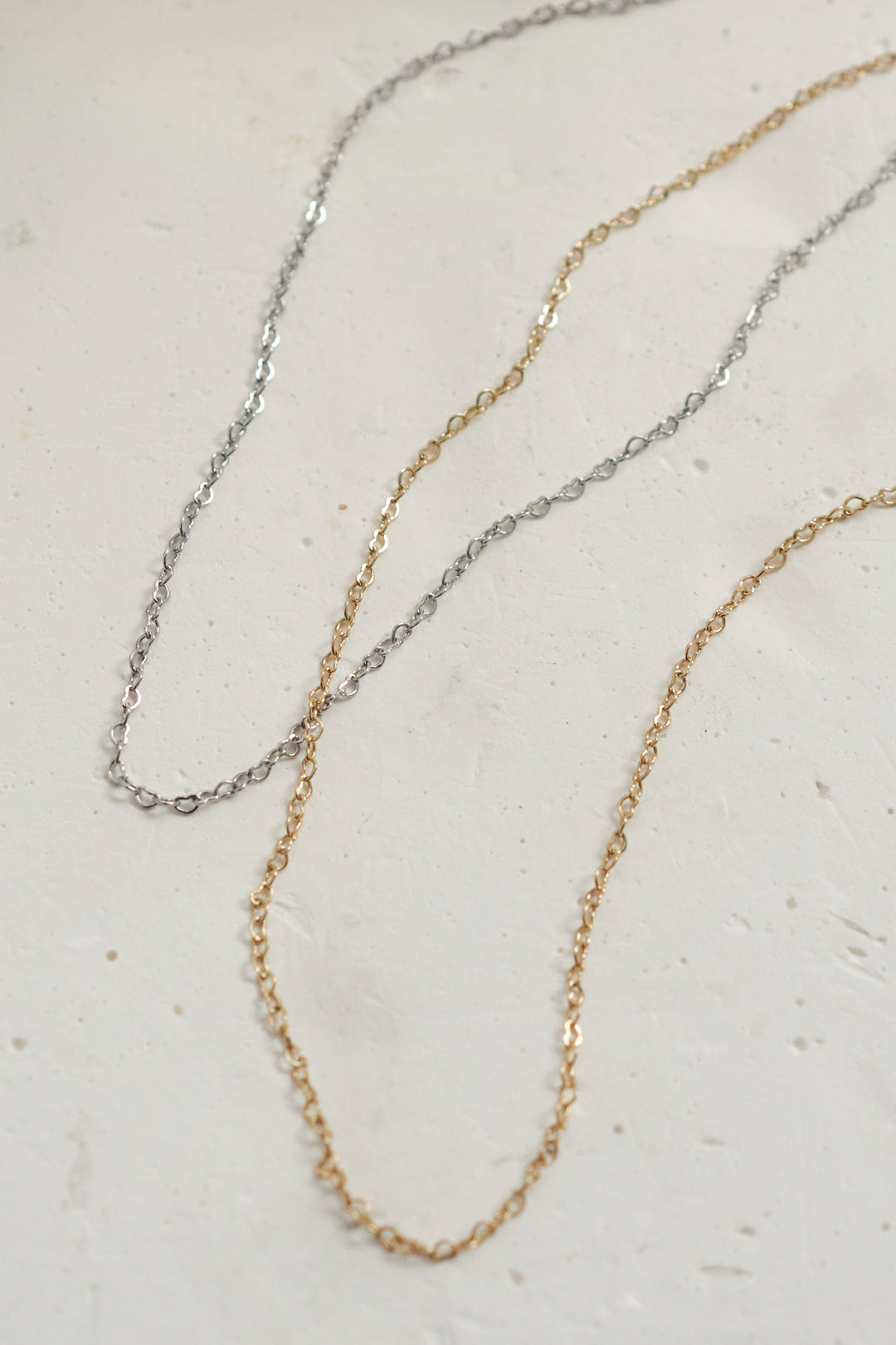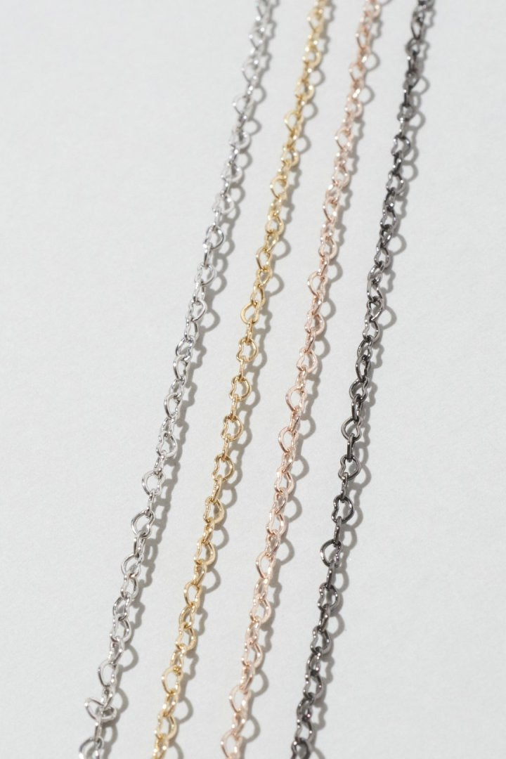 ミニマムサイズのハートが連なった、華奢なチェーンネックレス。
