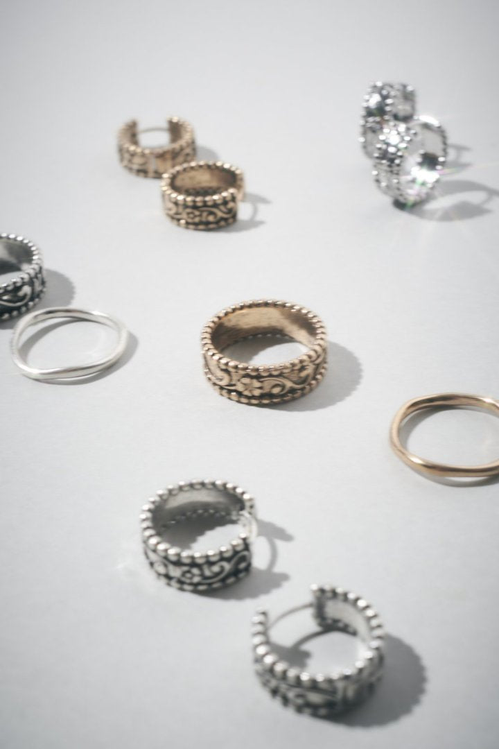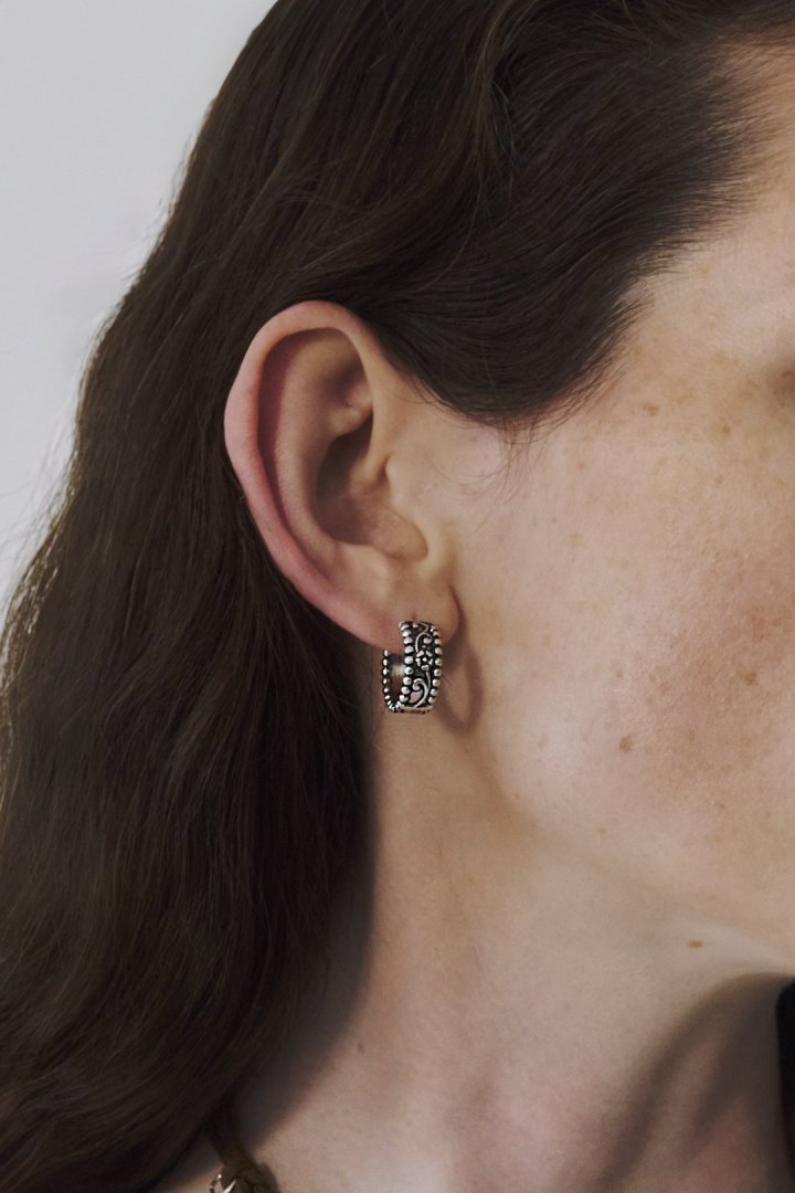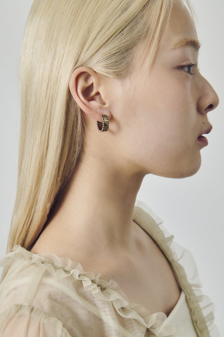 ヴィンテージ シック エングレイヴ ワンタッチ ピアス