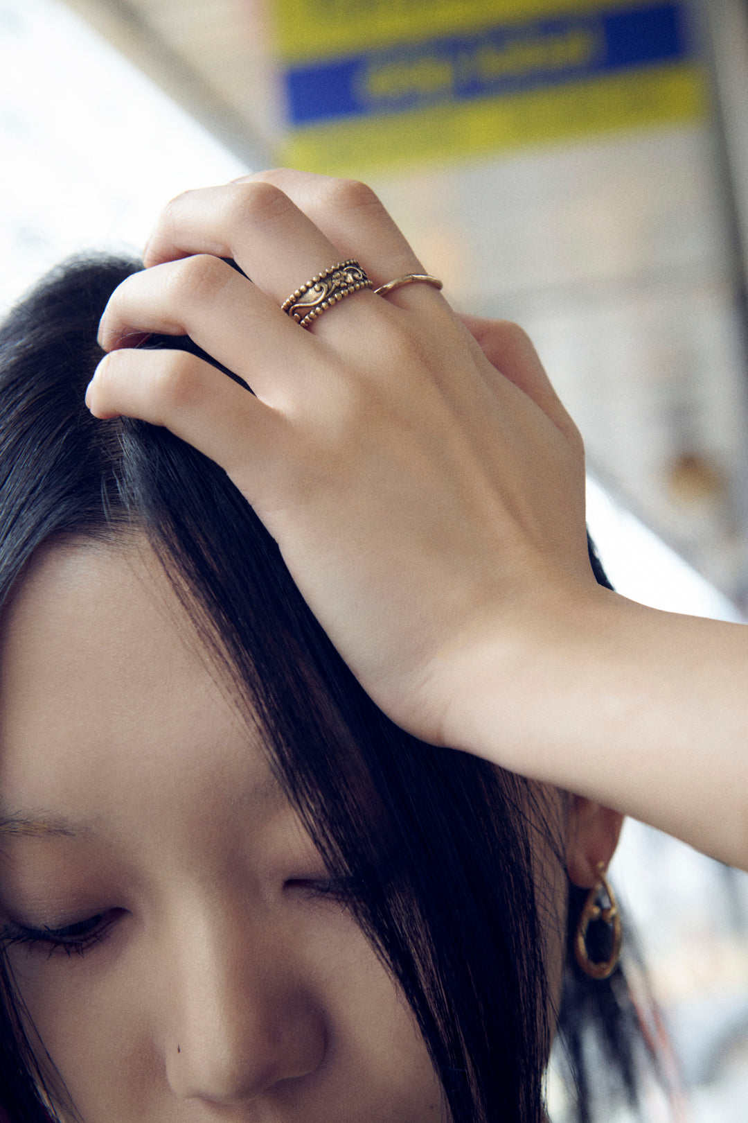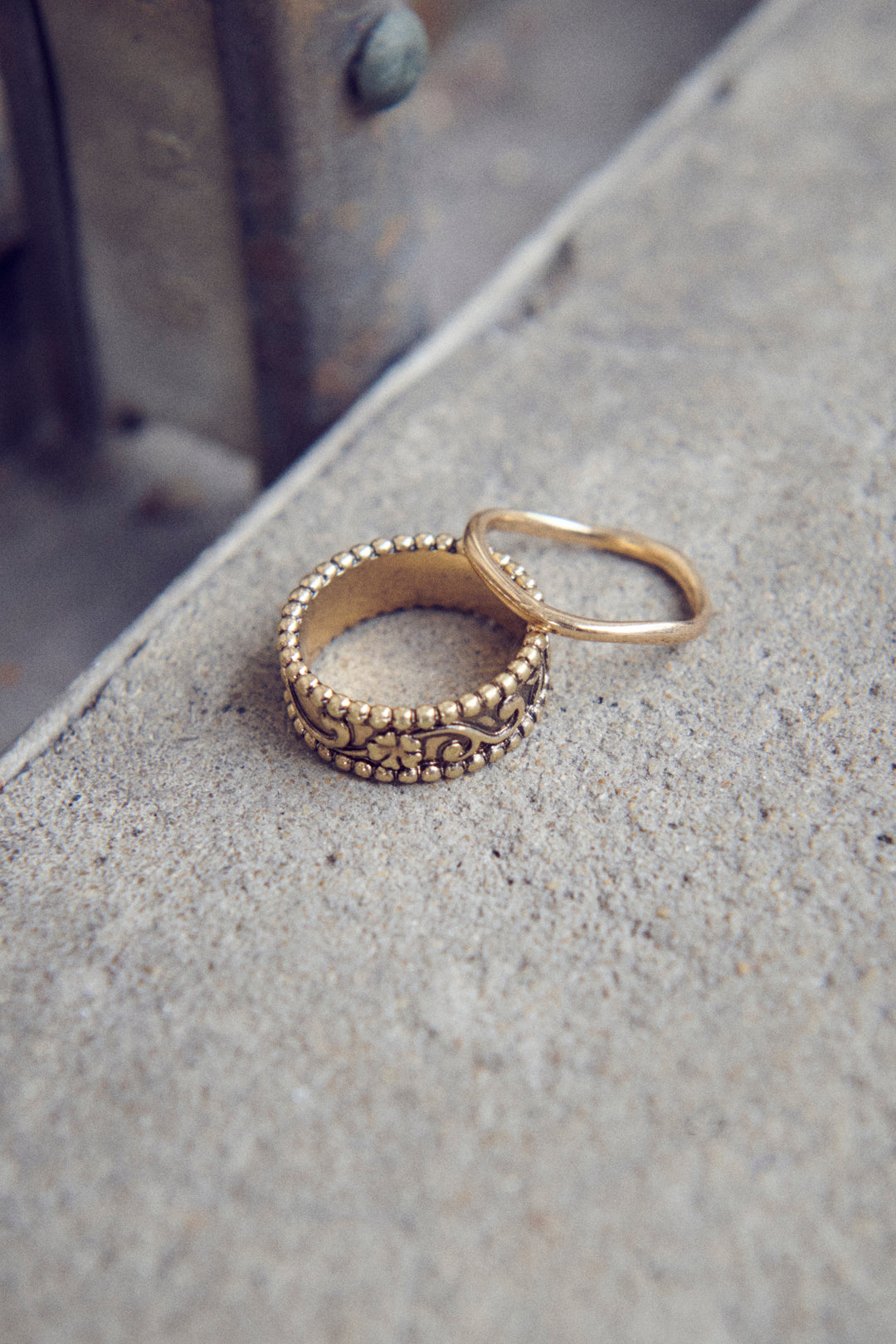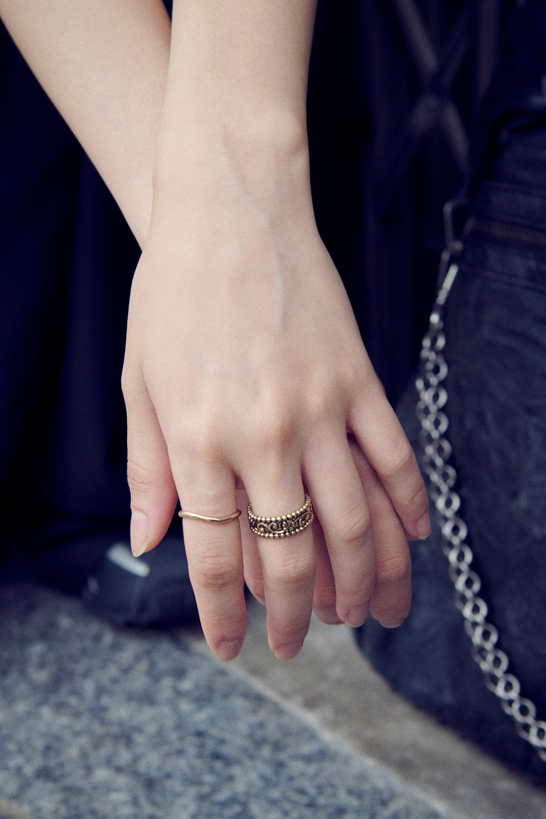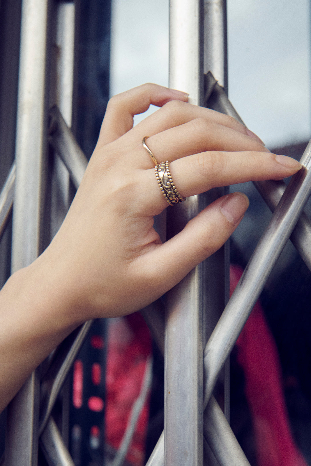 【GOLDYオリジナル】GOLDYオリジナルデザインのセットリング・異なるデザインのリングが2本セットに・ヴィンテージライクな模様がポイント・そのまま重ね着けするのはもちろん、単品使いも◎ヴィンテージ感のある立体模様のリングと、緩くウェーブしたシンプルなリングの2本セット。